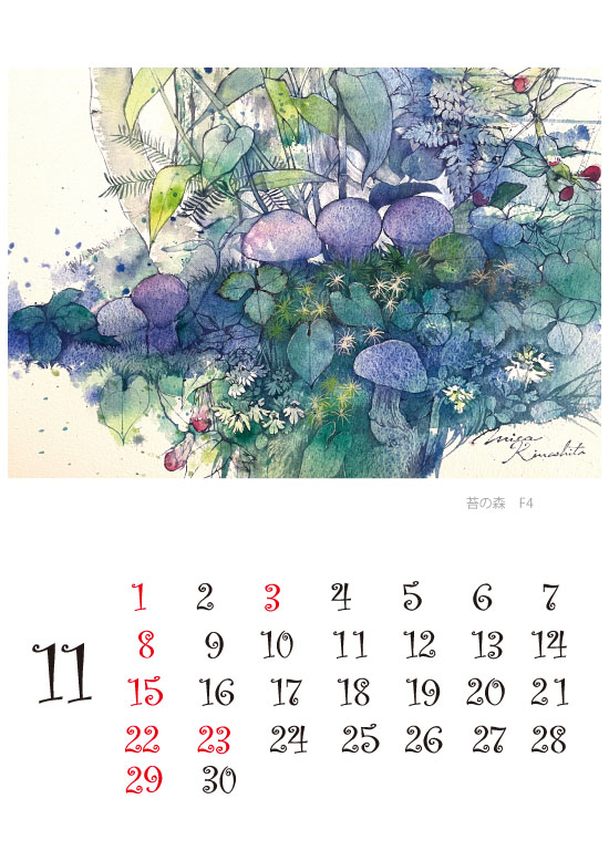 ふわふわの苔の上におもちゃのようなきのこが並ぶ。足元には赤い豆電球のようなツルリンドウの実。神様は時々こんな遊びをするのだ。